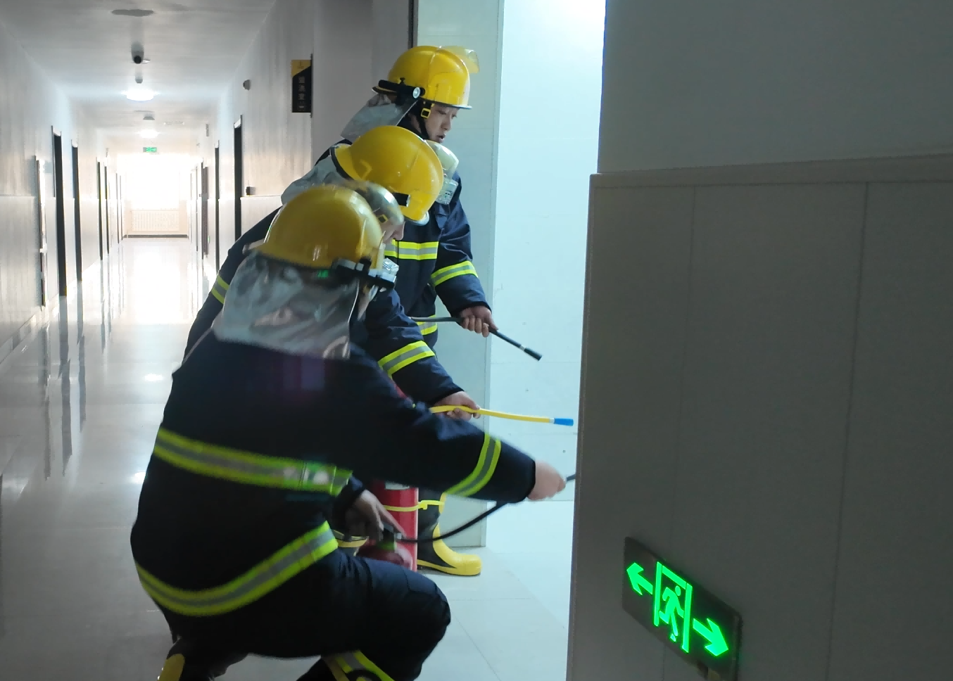 16时35分,救援行动全面展开。安全管理人员作为“第一灭火力量”,在火警确认后60秒内迅速利用现场灭火器、消防水带进行初期控制。随后,煤矿应急消防队在3分钟内抵达现场,展开强力扑救。与此同时,消防控制室值班人员通过广播和逐层敲门的方式,组织楼内人员用湿毛巾捂住口鼻、低姿弯腰,沿安全通道快速有序撤离。矿救护大队随后抵达,携带抢险救援设备进行火场强攻和人员搜救。后勤科迅速切断非消防电源,确保应急照明和消防设施供电正常。安全救护组立即设置安全警戒区,清理消防通道,矿医院医护人员在现场严阵以待,随时准备对伤员进行救治。