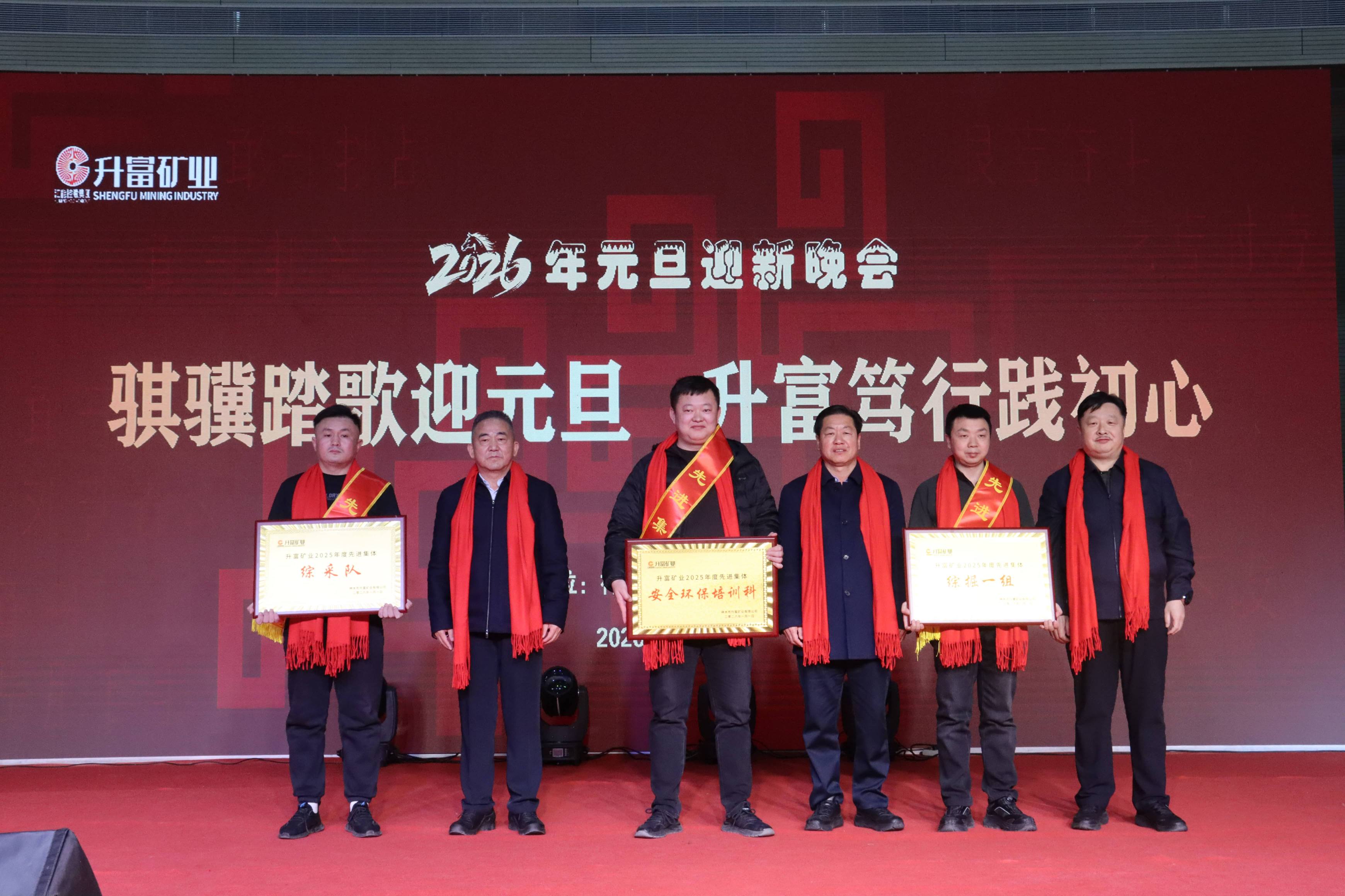 1月1日晚,神木市升富矿业有限公司2026年元旦文艺晚会在文体中心隆重举行。回望2025,这是升富矿业从建设转入生产的关键元年,更是项目收官的攻坚之年。在集团的坚强引领下,我们凝心聚力促发展,务实笃行创实绩,紧紧围绕安全、增效、稳产、提质四大核心战略,攻坚克难、锐意进取,推动各项工作实现突破性进展,高效完成年度任务,为企业高质量发展奠定了坚实基础!